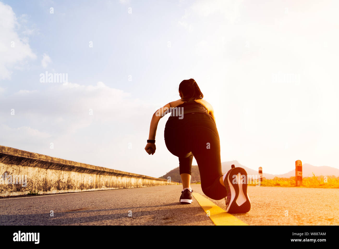 Ready Go Running Woman On Start Position And Going To Run On Long Road Stock Photo Alamy